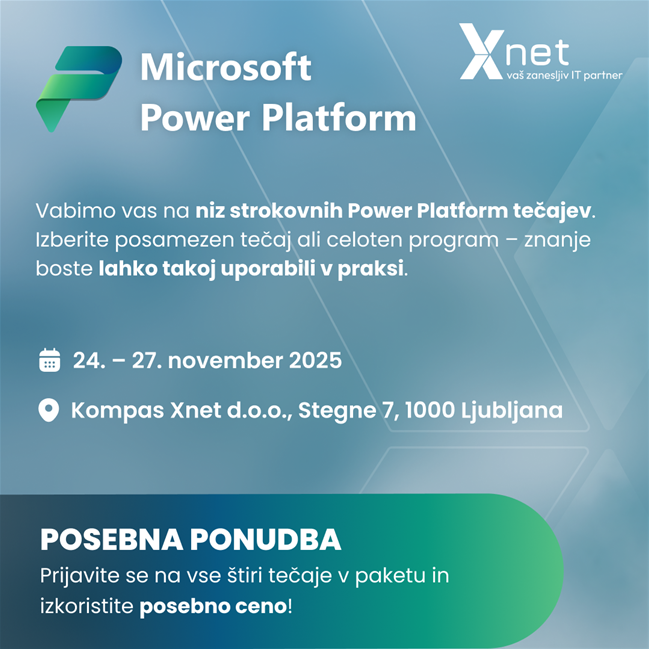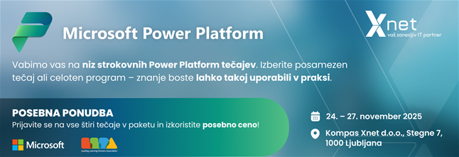 Vabimo vas na niz strokovnih Power Platform tečajev. Izberite posamezen tečaj ali celoten program – znanje boste lahko takoj uporabili v praksi.