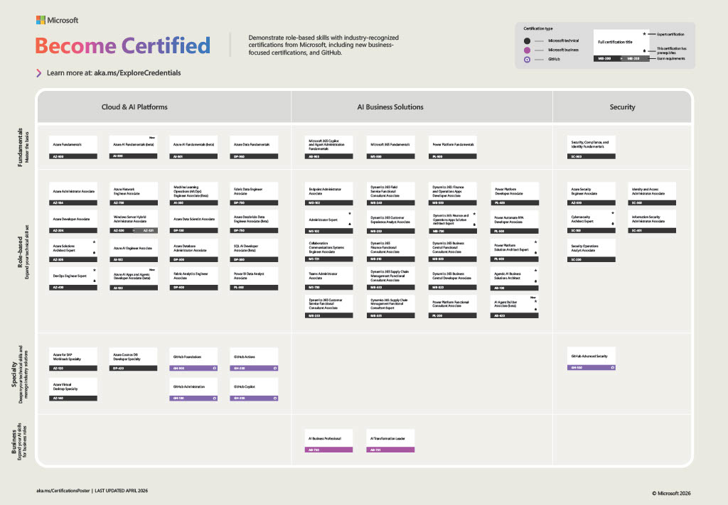 Microsoftovi certifikati že dolgo veljajo za industrijski standard. V podjetjih so prepoznani, globalno deljivi in zasnovani tako, da podpirajo karierni razvoj - od vstopnih vlog do naprednih, tudi vodstvenih položajev. Kandidati z opravljanjem izpita dokažejo razumevanje ključnih odgovornosti posamezne delovne vloge in širino znanja, ki jo ta zahteva. Razdeljeni so po ravneh (Fundamentals, Associate, Expert in Specialty) in pomagajo jasno pokazati, kakšno širino znanja ima nekdo v določeni vlogi.